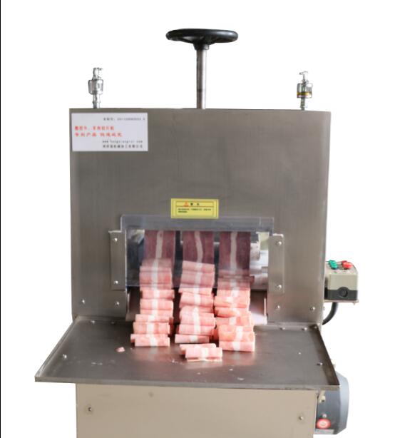 鴻祥瑞數(shù)控切片機HXR-S3型一次可以切3卷(板)羊肉或肥牛,鴻祥瑞數(shù)控切片機采用西門子PLC控制,步進電機傳動,徹底解決了機械切片機故障率高的難題,真正意義上實現(xiàn)了全自動化。紅外線感應(yīng)安全防護裝置(選裝),公司通過市場調(diào)研,特研發(fā)一次性刀具,解決部分客戶磨刀難的問題。雙導(dǎo)向推進器,自動進退,起刀高度18CM,可以立著切肥牛板,調(diào)整厚薄不用停機,可根據(jù)所需要的厚度在數(shù)控開關(guān)自動加減,每小時可切肉100-150公斤,工作臺采用食品專用有機塑料板制成,保證食品安全、衛(wèi)生,肉卷無需解凍,可直接上機操作,并可切出多種卷形(粗卷、細(xì)卷、長卷),成形整齊、美觀,并成排列狀,容易包裝,加工效率高、安全、節(jié)省人工。是大型火鍋店、大中型牛羊肉批發(fā)商的首選設(shè)備。